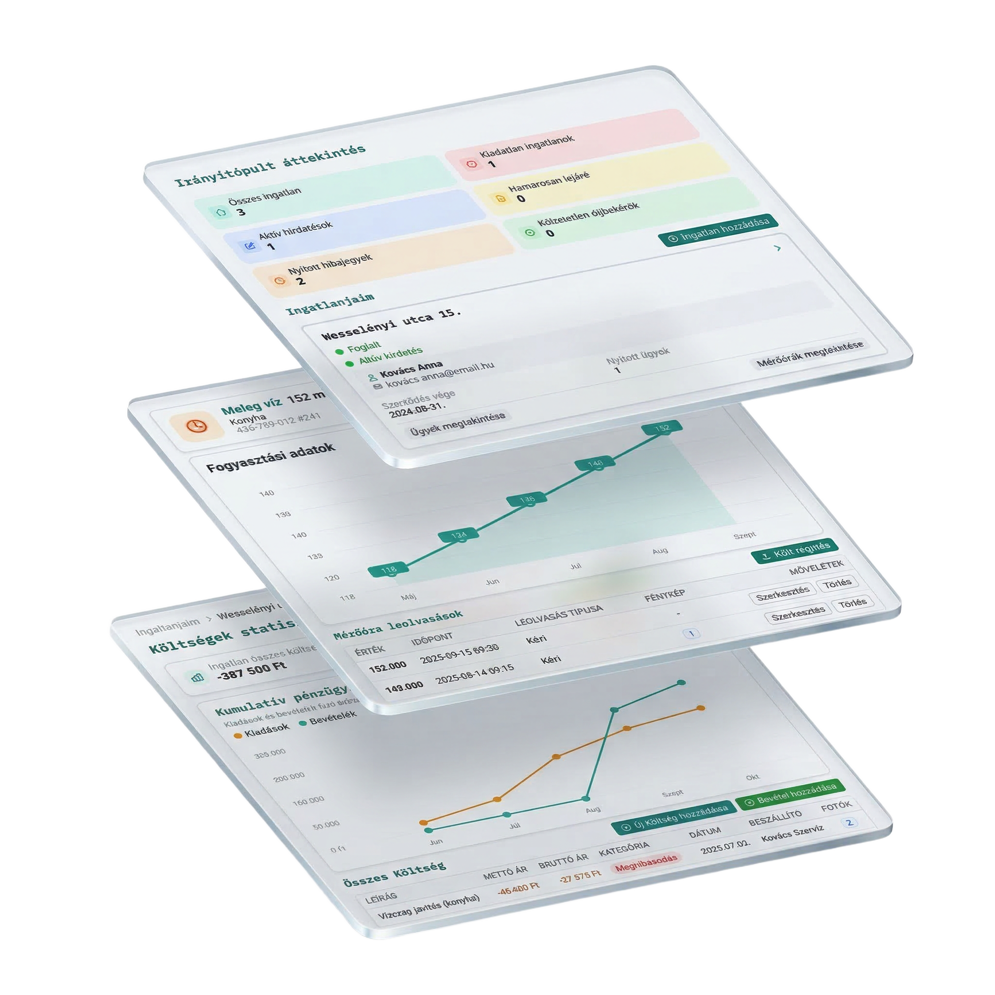 Egymásra épülő funkciók támogatják a bérbeadás teljes napi működését, az üzemeltetéstől és kommunikációtól kezdve a pénzügyi átláthatóságon át egészen a megalapozott, adatvezérelt döntéshozatalig.
