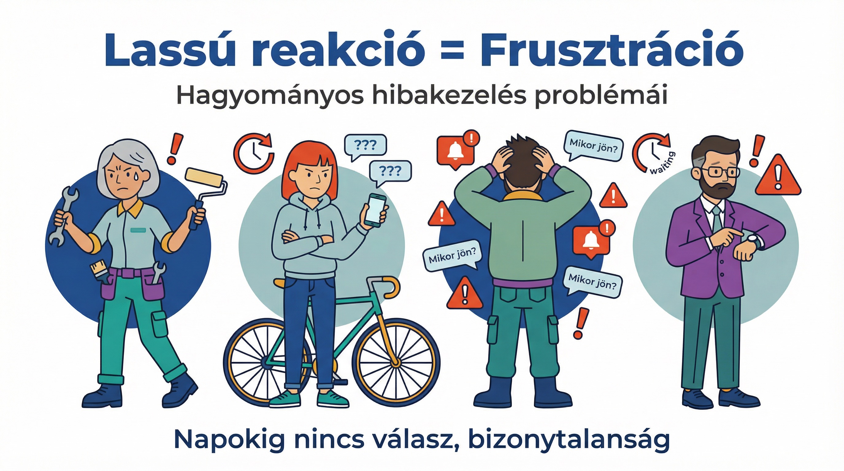 A bérlő nem azt várja, hogy 10 perc alatt ott legyen a szerelő – hanem azt, hogy tudja, mi történik. A digitális világban mindenki hozzászokott a státuszértesítésekhez: ha csomagot rendelünk, látjuk, mikor csomagolták, mikor indult útnak, mikor érkezik.